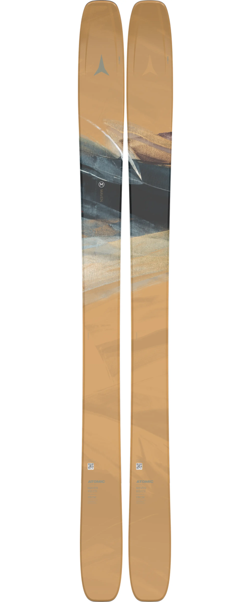 A pure all-conditions freeride ski, the women's Atomic Maven 103 CTI is designed to charge hard and driven to explore new terrain. Built similar to the sturdy, lower-impact design of the unisex Maverick 105 CTI, the Maven 103 CTI core construction uses less metal, fiberglass and resin, and features a Power Woodcore that uses a unique blend of ash and poplar wood to improve the ski’s stability and significantly reduce vibration when at speed. CTI Powered, the core utilizes a precise mixture of carbon and titanal to deliver the perfect balance of agility and sturdiness for hard-charging, highly energetic skiing. All Mountain Rocker and the uniquely beveled three-dimensional HRZN 3D tip increases surface area for improved float in deeper snow conditions. The ski of choice for Atomic skiers like Amie Engebretson, it’s the smooth and cruisy, yet firm and fierce all-mountain performance of the Maven 103 CTI that keeps her chasing after the next turn.